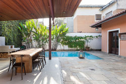 Nossa intervenção, além de atender à demanda, agregou qualidade ao entorno da piscina que passou a ser um espaço agradável de estar e de conexão entre a casa principal e a casa de hóspedes.